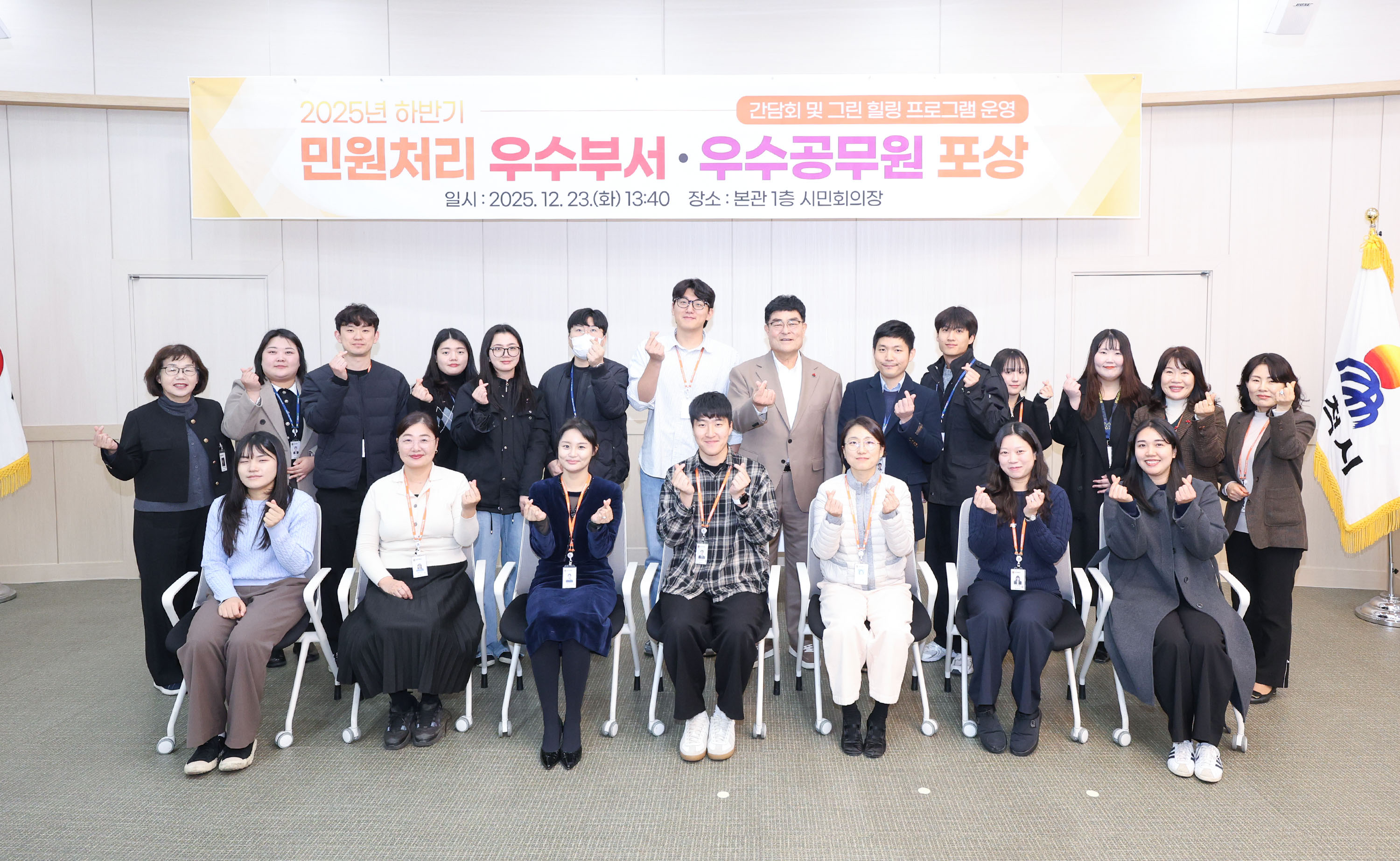 »ïô½Ã(½ÃÀå ¹Ú»ó¼ö)´Â Áö³ 12¿ù 23ÀÏ ½Ãû ½Ã¹ÎȸÀÇÀå¿¡¼ 2025³â ÇϹݱ⠹οøÃ³¸® ¿ì¼öºÎ¼¿Í ¿ì¼ö°ø¹«¿ø¿¡ ´ëÇÑ Æ÷»ó½ÄÀ» °³ÃÖÇÏ¿© ¹Î¿ø ¼ºñ½º Çâ»ó¿¡ ±â¿©ÇÑ Á÷¿øµéÀ» °Ý·ÁÇß´Ù. À̹ø...