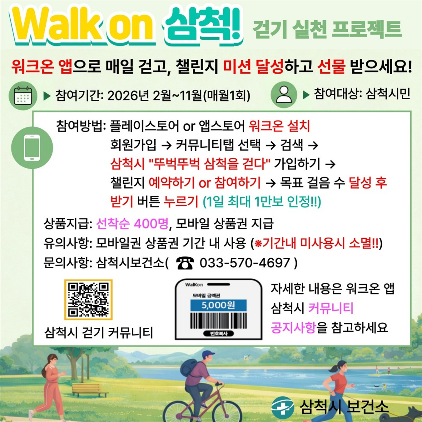 »ïô½Ã(½ÃÀå ¹Ú»ó¼ö)´Â ½Ã¹ÎµéÀÇ °Ç° ÁõÁø°ú ÀÏ»ó ¼Ó °È±â ½ÇõÀ² Çâ»óÀ» À§ÇØ ¸ð¹ÙÀÏ °È±â ¾Û ¡¸¿öÅ©¿Â(Walk On)¡¹À» Ȱ¿ëÇÑ ¡®¿öÅ©¿Â °È±â 縰Áö¡¯¸¦ 2¿ùºÎÅÍ 11¿ù±îÁö ¿î¿µÇÑ´Ù. ¿ö...