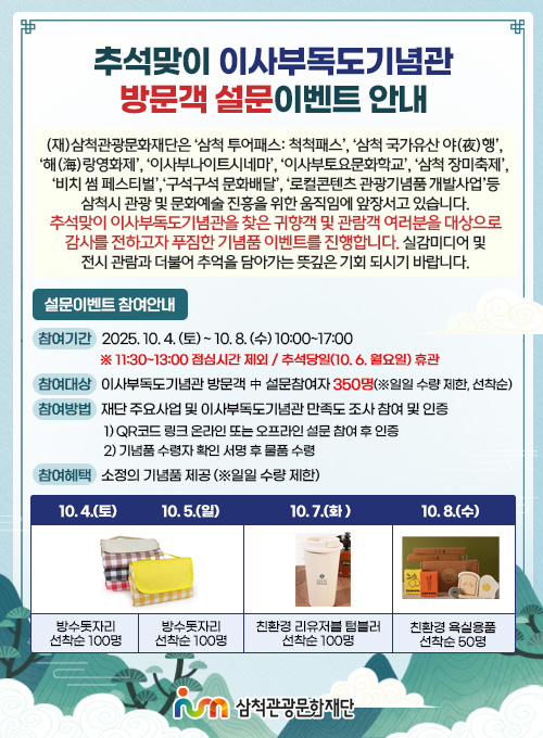 »ïô ÀÌ»çºÎµ¶µµ±â³ä°ü, Ãß¼®¿¬ÈÞ ¸ÂÀÌ ¼³¹® À̺¥Æ® ÁøÇà |