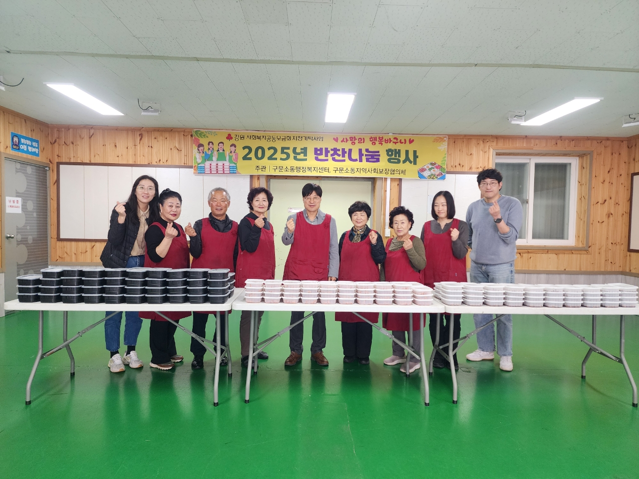 Źé½Ã ±¸¹®¼Òµ¿Áö¿ª»çȸº¸ÀåÇùÀÇü(¹Î°£À§¿øÀå ±èÁرÙ, °ø°øÀ§¿øÀå ÀÌâ±Ù)´Â Áö³­ 22ÀÏ ±¸¹®¼Òµ¿ÇàÁ¤º¹Áö¼¾ÅÍ¿¡¼­ »ç¶ûÀÇ Çູ¹Ù±¸´Ï ¹ÝÂù ³ª´® 4ȸÂ÷ Çà»ç¸¦ ÁøÇàÇß´Ù. À̹ø Ȱµ¿Àº Áö¿ª ¾î·Á¿î ÀÌ¿ôÀ» À§ÇÑ ²ÙÁØÇÑ °ü½É°ú Áö¿øÀÇ ÀÏȯÀ¸·Î, ¹ÝÂù Àü´Þ °úÁ¤¿¡¼­ ÇÊ¿ä¿Í ¾î·Á¿òÀ» ¼¼½ÉÈ÷ »ìÇÇ¸ç µµ¿òÀ» Á¦°øÇß´Ù. À̳¯ ÇùÀÇü À§¿ø 22¸íÀº °ü³» Ãë¾à°èÃþ 57°¡±¸¿¡ Á÷Á¢ ¸¸µç ¹ÝÂù 3Á¾À» Àü´ÞÇÏ°í ¾ÈºÎ¸¦ »ìÆñ´Ù. ±èÁر٠¹Î°£À§¿øÀåÀº ¡°¾ÕÀ¸·Îµµ Ãë¾à°èÃþÀ» À§ÇØ ´Ù¾çÇÑ ºÀ»çȰµ¿À» À̾¸ç ³ª´®ÀÇ °¡Ä¡¸¦ ½ÇÇöÇϰڴ١±°í ¸»Çß´Ù. ÀÌâ±Ù ±¸¹®¼Òµ¿ÀåÀº ¡°¸ÀÀÖ´Â À½½ÄÀ¸·Î ¾î·Á¿î ÀÌ¿ô¿¡°Ô µû¶æÇÑ ¿Â±â¸¦ Àü´ÞÇØÁֽô ÇùÀÇü¿¡ °¨»çµå¸°´Ù¡±°í ÀüÇß´Ù.