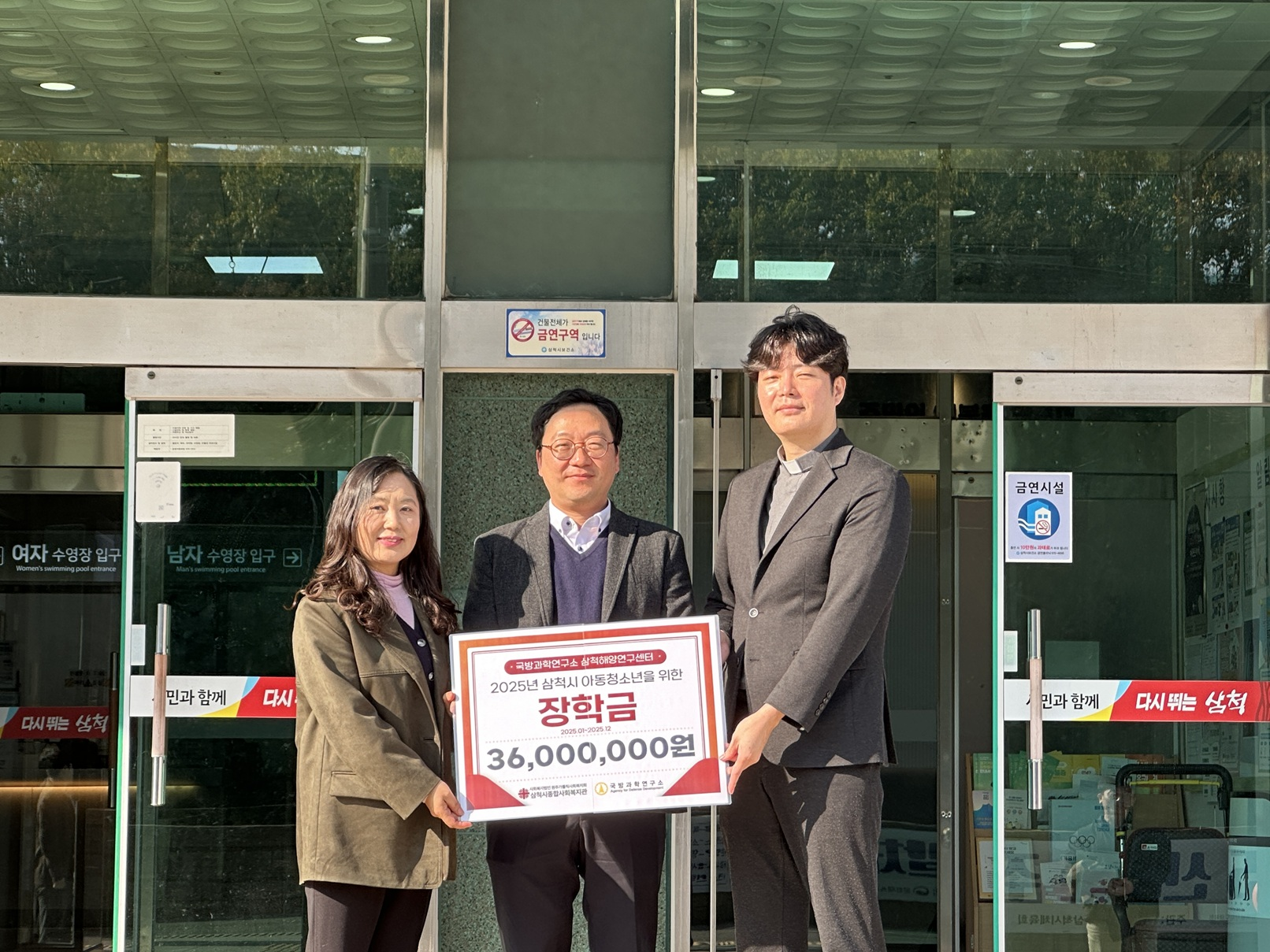 »ïô½ÃÁ¾ÇÕ»çȸº¹Áö°ü(°üÀå ½É»óÀº)°ú »ïô½Ã°¡Á·¼¾ÅÍ(¼¾ÅÍÀå ¹Ú³ªÀ±)´Â ±¹¹æ°úÇבּ¸¼Ò »ïÃ´ÇØ¾ç¿¬±¸¼¾ÅÍ(¼¾ÅÍÀå ±è¼º¿ë)¿Í ÇÔ²² 2025³â ÇÑ ÇØ µ¿¾È °ü³» ¾Æµ¿¡¤Ã»¼Ò³â 30¸í¿¡°Ô ÃÑ 3,600¸¸ ¿ø »ó´çÀÇ ÀåÇбÝÀ» Áö¿øÇß´Ù.