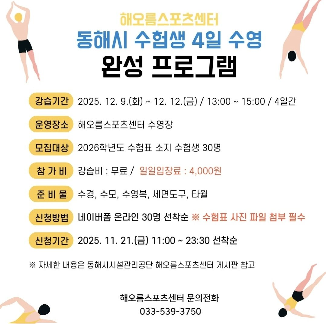 - ÇØ¿À¸§½ºÆ÷Ã÷¼¾ÅÍ ¼ö¿µ°½À 4ȸ ÇÁ·Î±×·¥ ¿î¿µ(25.12.09. ~ 12.12.) |