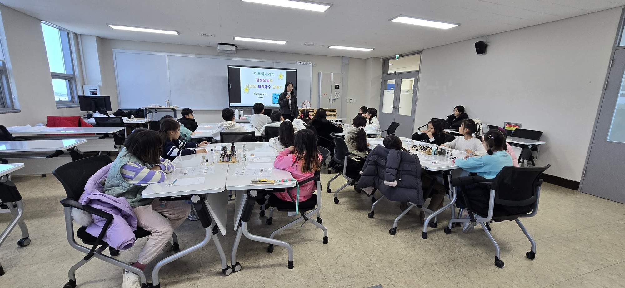 À̹ø ÇÁ·Î±×·¥Àº ÃÑ 5ÁÖ°£ °¿ø´ëÇб³ »ïôķÆÛ½º ±×¸°¿¡³ÊÁö¿¬±¸°ü¿¡¼ ÃÑ 90¸íÀÇ ÀοøÀÌ Âü¿©ÇÏ¿© ÁøÇàµÇ¾úÀ¸¸ç, ¡ãÅ×¶óÇÇ ±³½Ç ¡ã»ó»ó¹Ì¼ú ±³½Ç ¡ãÀι®¡¤°æÁ¦ ±³½Ç µî ÁÖÂ÷º° Å׸¶¿¡ µû¶ó ´Ù¾çÇÑ È°µ¿ÀÌ ¿î¿µµÆ´Ù. 1ÁÖÂ÷ ¡®Å×¶óÇÇ ±³½Ç¡¯¿¡¼´Â õ¿¬ ¾Æ·Î¸¶¿Í Çâ¼ö ¸¸µé±â, Å×¶óÇÇ È°µ¿À» ÅëÇØ ¾Æµ¿ÀÇ Á¤¼ ¾ÈÁ¤°ú ÀÚ±â Ç¥ÇöÀ» µµ¿ÔÀ¸¸ç, 2~3ÁÖÂ÷ ¡®»ó»ó¹Ì¼ú ±³½Ç¡¯¿¡¼´Â Á¶Çü¡¤Ä³½ºÆÃ¡¤3D ÇÁ¸°ÆÃ µî âÀÛ È°µ¿À» ÅëÇØ »ó»ó·Â°ú âÀÇÀû ¹®Á¦ ÇØ°á ´É·ÂÀ» Ű¿ü´Ù. 4~5ÁÖÂ÷ ¡®Àι®¡¤°æÁ¦ ±³½Ç¡¯¿¡¼´Â ¿µ¾î¡¤¿ª»ç¡¤°æÁ¦ ±³À°À» ÅëÇØ »ç°í·Â°ú ±âÃÊ ÇнÀ ¿ª·®À» ±ÕÇü ÀÖ°Ô °ÈÇß´Ù.
