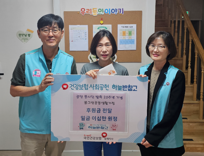 ±¹¹Î°Ç°º¸Çè°ø´Ü µ¿ÇØÁö»ç(Áö»çÀå ±èÇâ¸í)´Â 29ÀÏ, Ãß¼® ¸íÀýÀ» ¸Â¾Æ ¾Æµ¿º¹Áö½Ã¼³ÀÎ ¡®²Þ±×¸°°øµ¿»ýȰ°¡Á¤¡¯À» ¹æ¹®ÇÏ¿© 20¸¸¿ø¿¡ »ó´çÇÏ´Â ÈÄ¿ø±ÝÀ» Àü´ÞÇÏ¸ç ¡®ÇϴùÝâ°í ŰÁ »çȸ°ø...