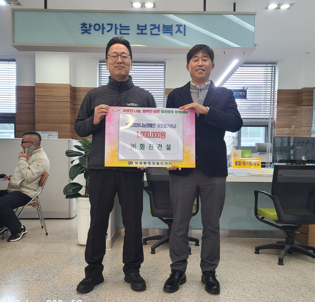 ÈÁø°Ç¼³(´ëÇ¥ Àüµæ±â)°ú žµðÀÚÀÎ(´ëÇ¥ ¾ö¿ëÈ£)Àº Áö³ 12¿ù 12ÀÏ ºÎ°îµ¿ÇàÁ¤º¹Áö¼¾Å͸¦ ¹æ¹®ÇØ ¡®Èñ¸Á2026³ª´®Ä·ÆäÀΡ¯ ¼º±Ý °¢ 100¸¸ ¿øÀ» ±âŹÇÏ¸ç ¿¬¸» ÀÌ¿ô»ç¶û ½Çõ¿¡ µ¿ÂüÇß´Ù. ...