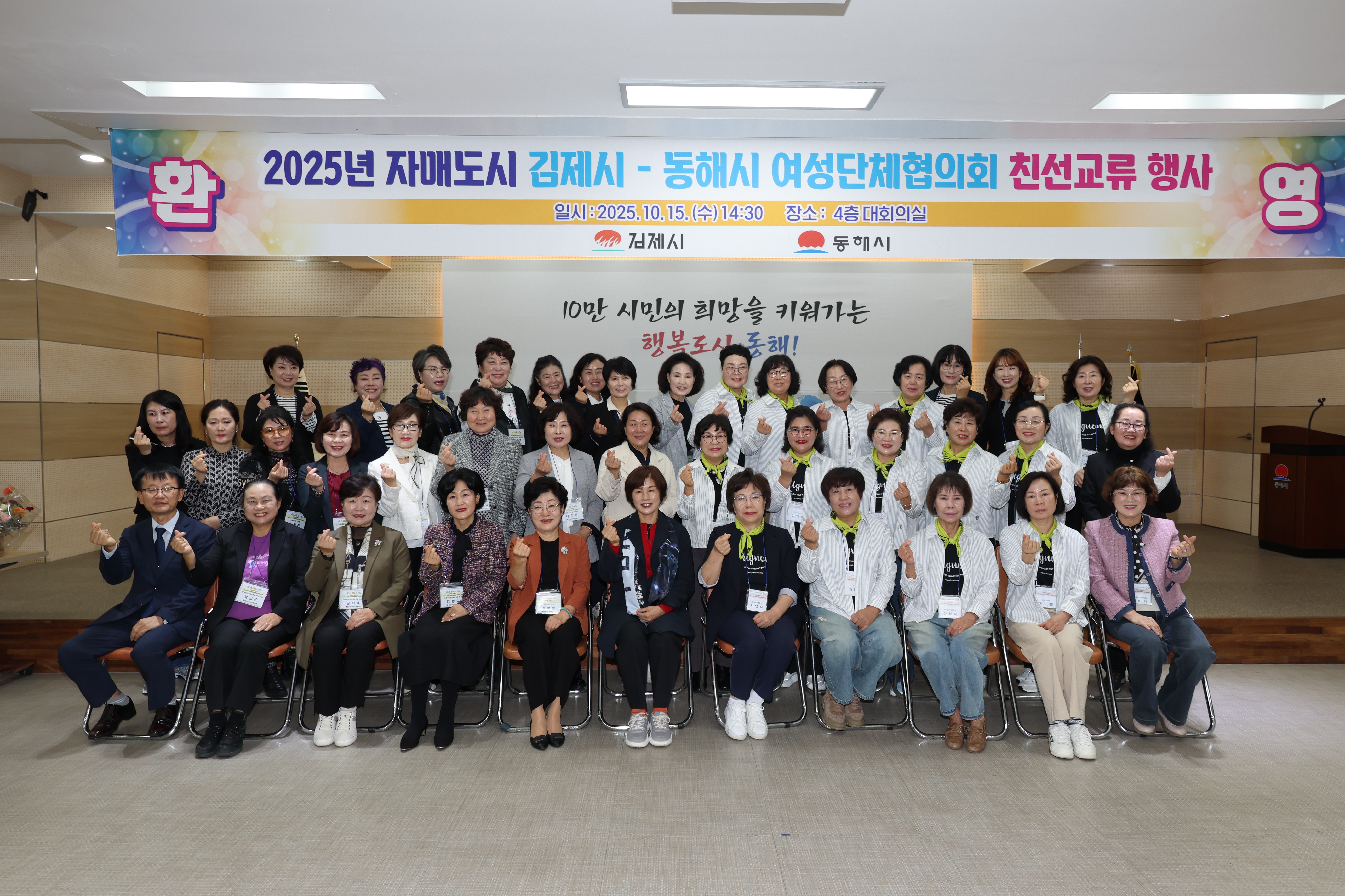 µ¿Çؽÿ©¼º´ÜüÇùÀÇȸ°¡ Àڸŵµ½ÃÀÎ ±èÁ¦½Ã¿©¼º´ÜüÇùÀÇȸ¿Í ÇÔ²² 15~16ÀÏ ¾çÀϰ£ µ¿ÇؽÃû ´ëȸÀǽǿ¡¼ Ä£¼±±³·ù Çà»ç¸¦ ¿°í, Áö¿ª ÈÇÕ°ú ¿ìÈ£ ÁõÁøÀ» ´ÙÁ³´Ù. À̹ø Çà»ç´Â µÎ µµ½Ã ¿©...