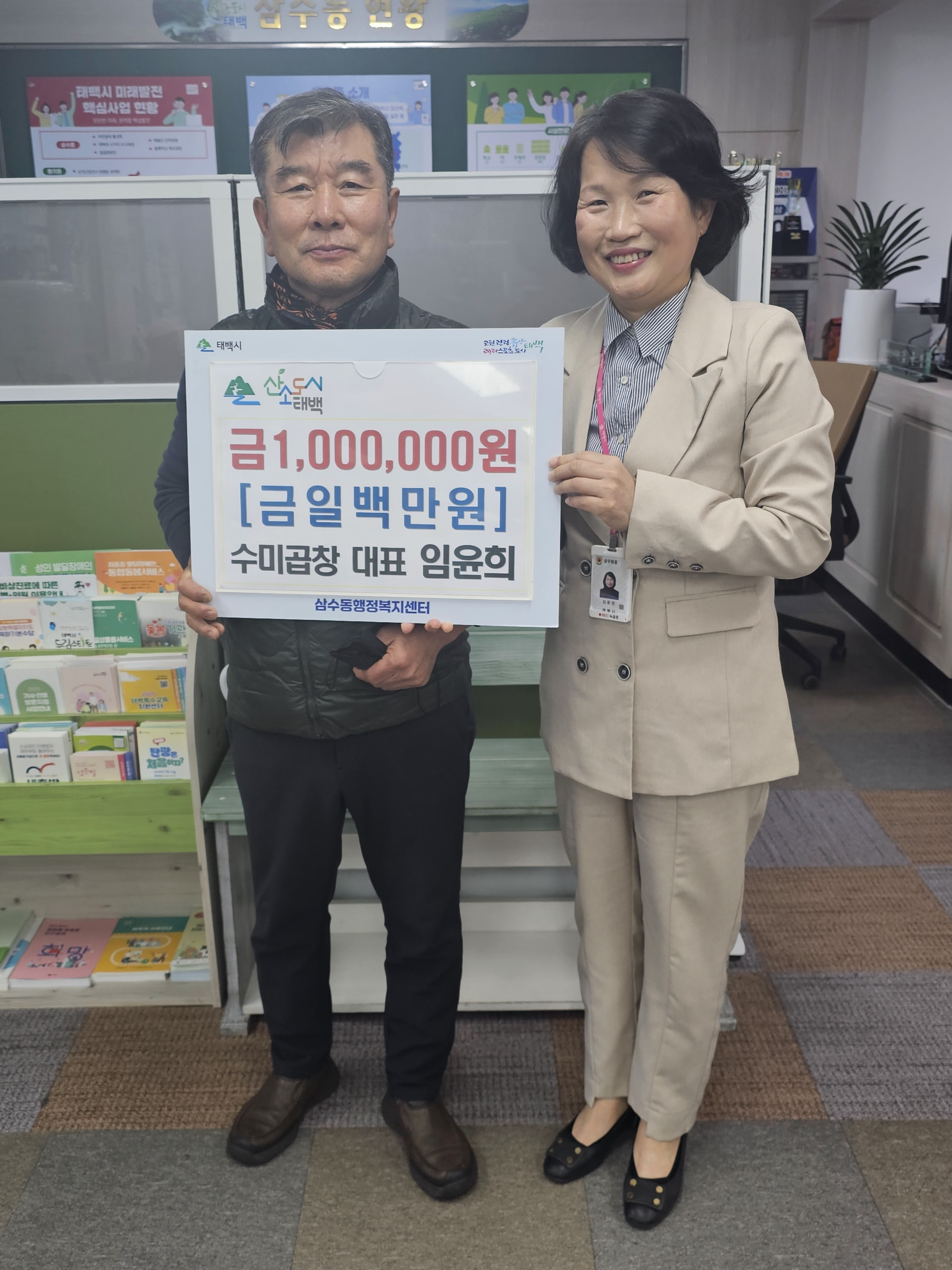 Źé½Ã(½ÃÀå ÀÌ»óÈ£) »ï¼öµ¿ ÇàÁ¤º¹Áö¼¾ÅÍ´Â Áö³ 10¿ù 24ÀÏ, ÀÓÀ±Èñ ¼ö¹Ì°öâ ´ëÇ¥·ÎºÎÅÍ »ï¼öµ¿ Àú¼Òµæ Ãë¾à°èÃþ Áö¿øÀ» À§ÇØ 100¸¸ ¿øÀ» ±âºÎ¹Þ¾Ò´Ù°í ¹àÇû´Ù. ÀÓÀ±Èñ ´ëÇ¥´Â °ü³» ÅëÀå...