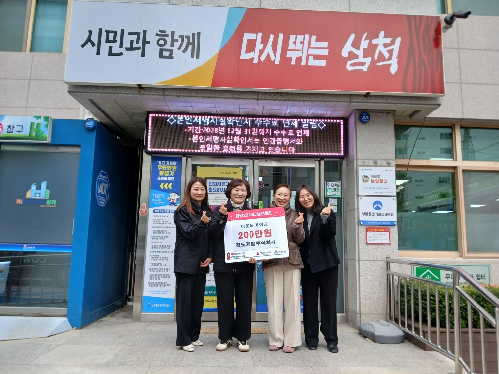Àû³ë°³¹ßÁÖ½Äȸ»ç(´ëÇ¥ ±è¹ÌÁ¤)´Â ³²¾çµ¿ Ãë¾à°èÃþÀÌ µû¶æÇÏ°í °Ç°ÇÑ °Ü¿ïÀ» ³ª±æ ¹Ù¶ó´Â ¸¶À½À» ´ã¾Æ ÀÌ¿ôµ½±â ¼º±Ý 200¸¸ ¿øÀ» ±âºÎÇÏ¿´´Ù.