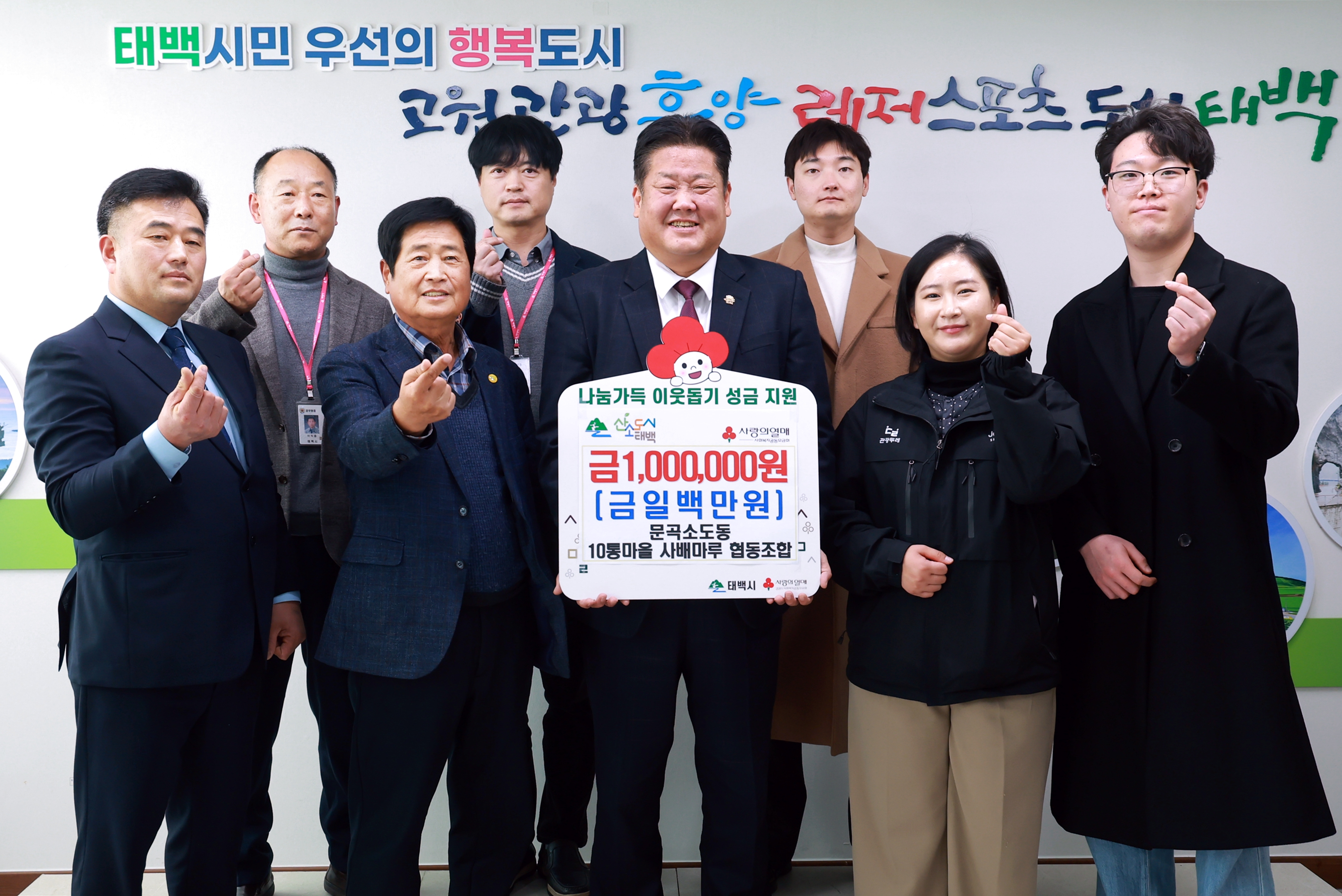 Źé½Ã(½ÃÀå ÀÌ»óÈ£)´Â ¹®°î¼Òµµµ¿ 10Å븶À» »ç¹è¸¶·ç Çùµ¿Á¶ÇÕ(´ëÇ¥ ±èâ³²)ÀÌ Áö³ 28ÀÏ Àú¼Òµæ °¡±¸ ¹× ¼Ò¿Ü°èÃþÀ» À§ÇØ ¼º±Ý 100¸¸ ¿øÀ» ±âºÎÇß´Ù°í ¹àÇû´Ù. ±èâ³² ´ëÇ¥´Â ¡°Å¹é½ÃÀÇ...