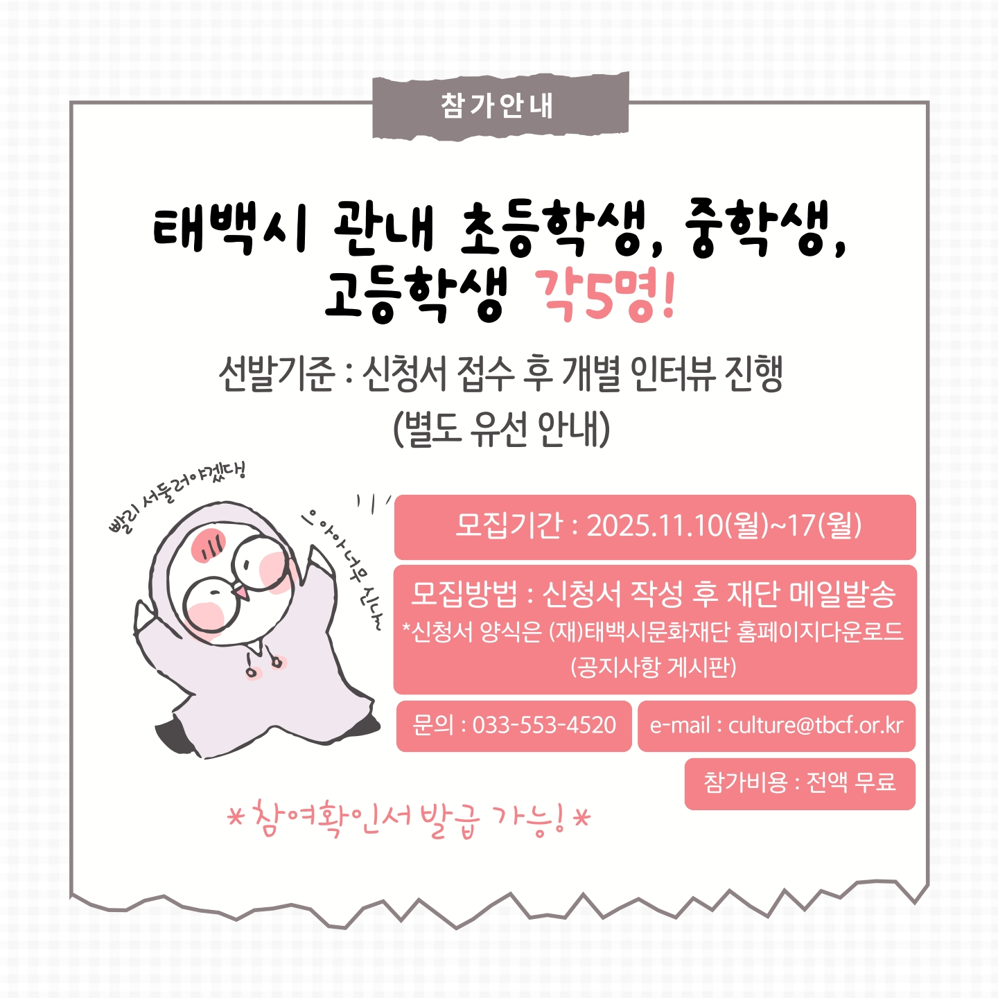 (Àç)Źé½Ã¹®ÈÀç´ÜÀº 11¿ù 20ÀÏ)ºÎÅÍ 21ÀÏ(±Ý)±îÁö 1¹Ú 2Àϰ£ ÅÂ¹é ²Þ²Ù´Â ¿¹¼úÅÍ(걤»çÅà ´©¸®Å¥ºê)¿¡¼ ¡¸Á¦1ȸ Źé û¼Ò³â ¹®È±âȹÀÚ ¾ç¼º°úÁ¤ ¡®1¹Ú 2ÀÏ ÇØÄ¿Åæ Ä·ÇÁ¡¯¡¹¸¦ ¿î¿µÇÑ´Ù...