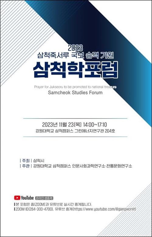 »ïô½Ã°¡ ÁÖÃÖÇÏ°í °¿ø´ëÇб³(»ïô) Àι®»çȸ°úÇבּ¸¼Ò(¼ÒÀå ¹®Àº½Ä)¿Í ÀüÅ빮ȿ¬±¸¼Ò(¼ÒÀå À±Àº¼÷)°¡ ÁÖ°üÇÑ À̹ø Æ÷·³Àº »ïô Á×¼·çÀÇ ±¹º¸ ½Â°ÝÀ» ±â¿øÇϰí, »ïôÇÐ ¿¬±¸¸¦ ÅëÇØ »ïôÀÇ Á¤Ã¼¼º°ú Áö¿ª¼º ¹× ¹ßÀüÀü·«À» ¸ð»öÇϱâ À§ÇØ ¸¶·ÃµÆ´Ù.