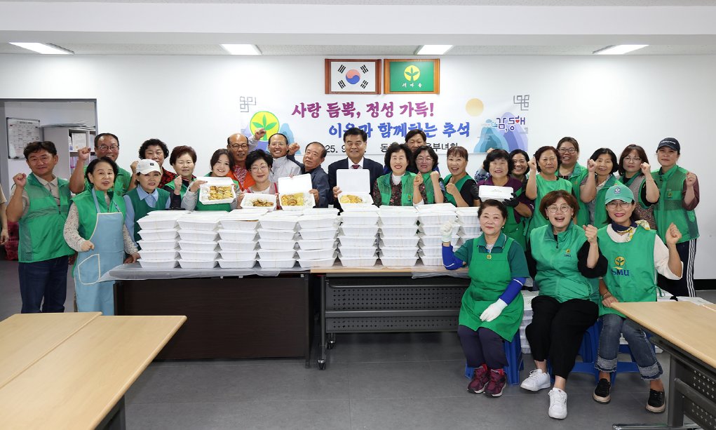 µ¿Çؽûõ¸¶À»ºÎ³àȸ(ȸÀå ±è¿ÁÀÚ)´Â 9¿ù 30ÀÏ(È) Ãß¼® ¸íÀýÀ» ¸Â¾Æ ȸ¿ø 50¿©¸íÀÌ ÇÔ²² Á¤¼º½º·´°Ô ¸¶·ÃÇÑ ¸íÀý À½½ÄÀ» Á÷Á¢ Á¶¸®ÇÏ¿© °ü³» Àú¼ÒµæÃþ 200°¡±¸¿¡ Àü´ÞÇß´Ù.