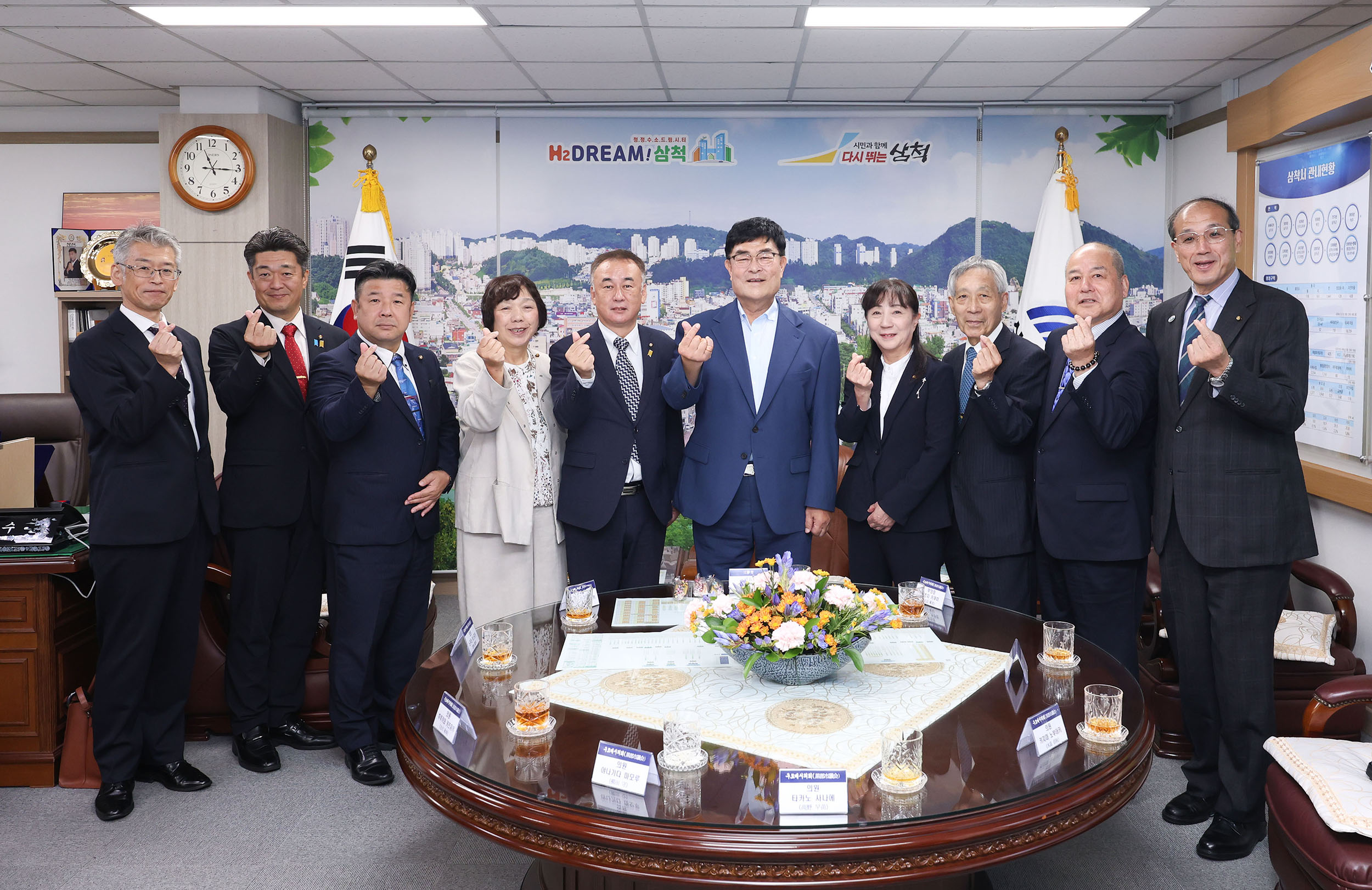 Á¦31ȸ »ïô½Ã¹ÎÀÇ ³¯À» ÃàÇÏÇϱâ À§ÇÏ¿© »ïô½Ã ÇØ¿Ü ÀڸŰῬµµ½ÃÀÎ ÀϺ» Äí·Îº£½ÃÀÇȸ ¹æ¹®´ÜÀÌ »ïô½Ã¸¦ ¹æ¹®ÇÏ¿© ¹Ú»ó¼ö »ïô½ÃÀå¿¡°Ô ŸÄÉÄí¸¶ ¿ä½ÃÄ«Áî Äí·Îº£½ÃÀåÀÇ ÃàÇÏ Àλ縦 Àü´ÞÇÏ¿´´Ù.
