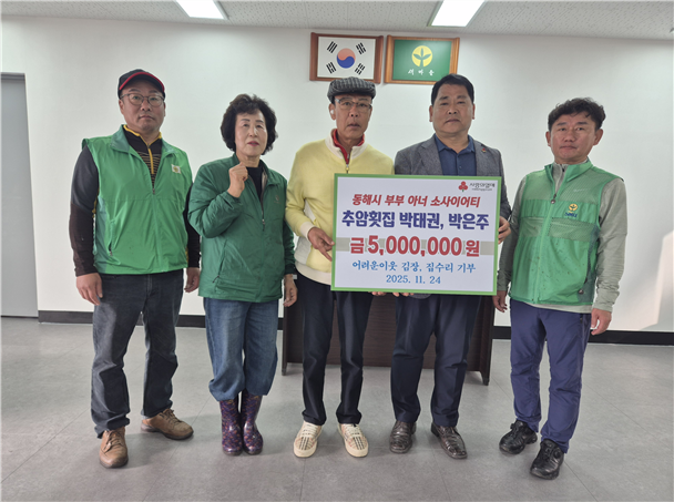 µ¿Çؽà Ãß¾ÏȽÁý(´ëÇ¥ ¹ÚűÇ, ¹ÚÀºÁÖ)Àº »õ¸¶À»¿îµ¿ µ¿ÇؽÃÁöȸ(ÁöȸÀå ±èÀμö)°¡ ÀÔµ¿À» ¸Â¾Æ ÁøÇàÇÏ´Â ¡®2025 »ç¶ûÀ» ³ª´©´Â Èñ¸Á»ç´Ù¸®¡¯ Çà»ç¿¡ Áö³ 11¿ù 24ÀÏ(¿ù) ±Ý5,000,000¿øÀ» ±âºÎÇß´Ù. ¹ÚűÇ, ¹ÚÀºÁÖ ºÎºÎ´Â Æò¼Ò¿¡µµ ²ÙÁØÇÑ ºÀ»ç¿Í ±âºÎ Ȱµ¿À¸·Î Áö¿ª»çȸ¿¡ µû¶æÇÑ ³ª´®À» ½ÇÃµÇØ¿Ô´Ù.