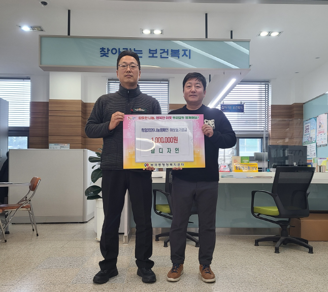 ÈÁø°Ç¼³(´ëÇ¥ Àüµæ±â)°ú žµðÀÚÀÎ(´ëÇ¥ ¾ö¿ëÈ£)Àº Áö³ 12¿ù 12ÀÏ ºÎ°îµ¿ÇàÁ¤º¹Áö¼¾Å͸¦ ¹æ¹®ÇØ ¡®Èñ¸Á2026³ª´®Ä·ÆäÀΡ¯ ¼º±Ý °¢ 100¸¸ ¿øÀ» ±âŹÇÏ¸ç ¿¬¸» ÀÌ¿ô»ç¶û ½Çõ¿¡ µ¿ÂüÇß´Ù.