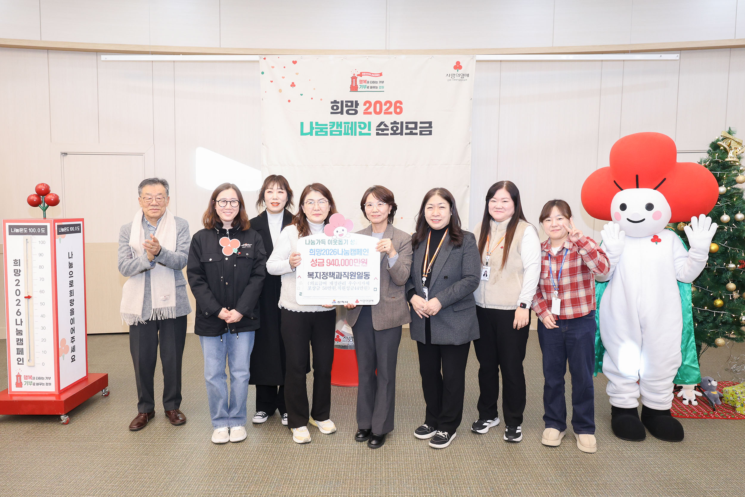 »ïô½Ã(½ÃÀå ¹Ú»ó¼ö)´Â Áö³ 12¿ù 18ÀÏ ½Ãû ½Ã¹ÎȸÀÇÀå¿¡¼ °¿ø»çȸº¹Áö°øµ¿¸ð±Ýȸ ÁÖ°üÀ¸·Î ¡¸Èñ¸Á2026 ³ª´®Ä·ÆäÀÎ ¼øÈ¸¸ð±Ý Çà»ç¡¹¸¦ °³ÃÖÇϰí, ÃÑ 2,525¸¸ ¿øÀÇ ¼º±ÝÀ» ¸ð±ÝÇß´Ù°í ¹àÇû´Ù.